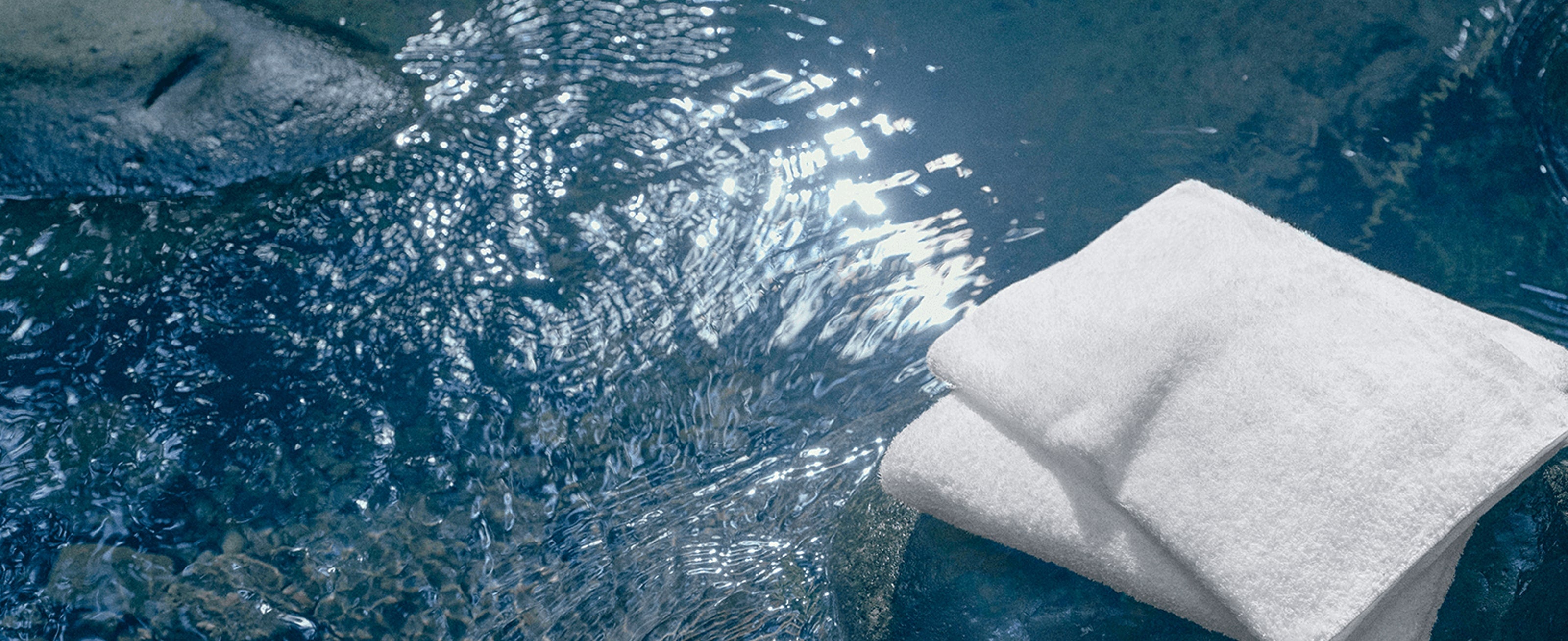 大阪・泉州では、和泉山脈から流れる豊富な水を資源とし、130年以上前からタオルづくりが行われてきました。地下200mから汲み上げられる地下水は、一度も枯れることなく、絶え間なく流れ続けています。